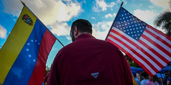 ▲ 미국의 베네수엘라 공격이 중국의 대만 침공에 명분을 제공할 수 있다는 우려가 나온다. 그러나 중국 정부가 이를 단기간에 강행할 가능성은 낮다는 전문가들의 관측이 제시됐다. 1월4일(현지시각) 미국 플로리다주에서 한 사람이 베네수엘라 정부를 규탄하는 시위에 참석하고 있다. <연합뉴스>
