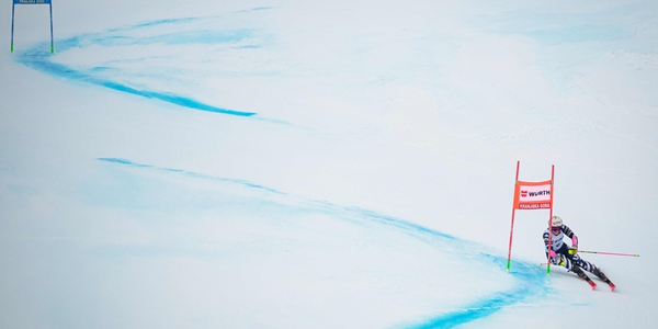 ▲ 3일(현지시각) 슬로베니아 크란스카고라에서 열린 2025~2026 알파인 스키 월드컵에서 한 선수가 스키 슬로프를 타고 내려오고 있다. <연합뉴스>